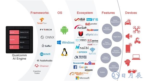 AI除了硬件和技術(shù)支持,更重要的當(dāng)然是生態(tài)建設(shè),這方面高通做得深入,擁有極大豐富的框架、系統(tǒng)、軟件、功能、蛇支持,尤其是在軟件生態(tài)方面,中國(guó)廠商相當(dāng)搶眼:商湯、曠視、有道、網(wǎng)易、科大訊飛、思必馳、大象聲科、騰訊、百度、阿里巴巴等都在努力。