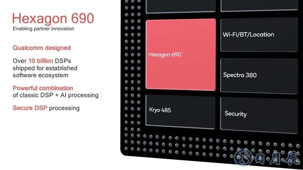DSP數(shù)字信號(hào)處理器升級(jí)為最新的Hexagon 690,自主設(shè)計(jì),綜合了傳統(tǒng)DSP能力與新的AI處理能力,并有相應(yīng)的安全處理能力。