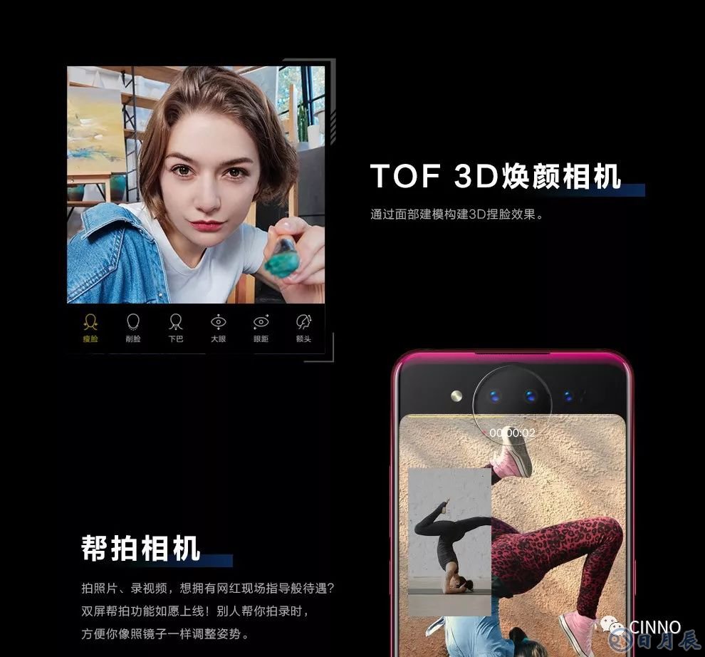 vivo NEX雙屏版搭載了定制的夜視雙攝像頭,單像素尺寸達(dá)到了2.9μm;此外,還有超級(jí)夜景,通過(guò)短時(shí)間連續(xù)采樣超過(guò)12張照片,進(jìn)行動(dòng)態(tài)包圍曝光,可實(shí)現(xiàn)動(dòng)態(tài)補(bǔ)償,夜景照片得到提升。NEX雙屏版還搭載了星環(huán)柔光燈,解決了暗環(huán)境不光問(wèn)題;而且NEX雙屏版將后置三攝和前置三攝實(shí)現(xiàn)了合二為一,也就意味著將后置的拍照能力同樣作用于自拍。
