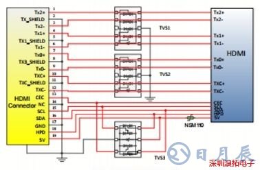 為滿足既能有效進(jìn)行ESD保護(hù),又不影響高速信號傳輸?shù)囊螅赵鲁娇萍荚O(shè)計(jì)HDMI2.0接口靜電防護(hù)方案: