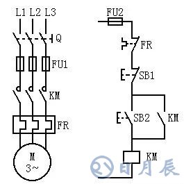 圖1 三相異步電動機(jī)單向運(yùn)行電器控制系統(tǒng)