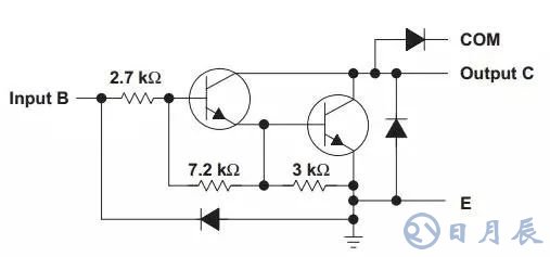 所以,ULN2003/2803同樣可以用于電平轉(zhuǎn)換,那這是為什么呢?ULN2803/2003與三極管又有什么關(guān)系——其內(nèi)部實(shí)現(xiàn)就是兩個(gè)三極管。