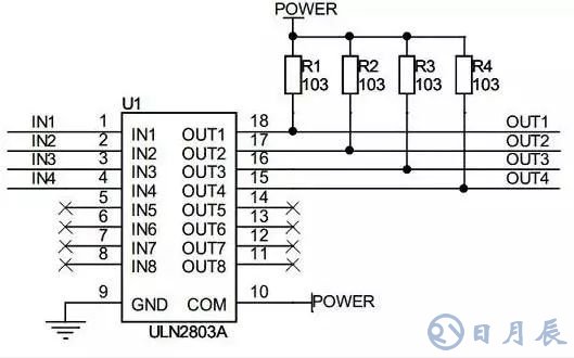 ULN2003與ULN2803的區(qū)別僅在于ULN2003只有8個(gè)通道,而ULN2803有9個(gè)通道。