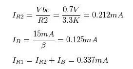 現(xiàn)在來(lái)分析下各個(gè)電阻的作用(抓住的核心思路是三極管的Vbe導(dǎo)通時(shí)為恒定值0.7V左右):