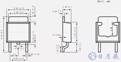 其中漏極(D)的引腳被剪斷不用,而是使用背面的散熱板作漏極(D),直接焊接在PCB上,一方面用于輸出大電流,一方面通過PCB散熱;所以PCB的D-PAK焊盤有三處,漏極(D)焊盤較大。其封裝規(guī)范如下: