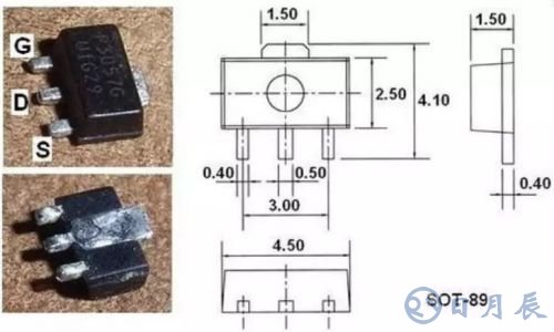 主板上常用四端引腳的SOT-89 MOSFET。其規(guī)格尺寸如下:
