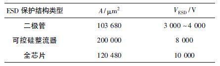 2.2、3種結(jié)構(gòu)所占用的芯片面積以及ESD耐壓測試結(jié)果比較