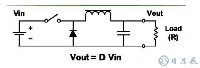 ■輸出電壓為輸入電壓乘以開關的負荷比 (D)。