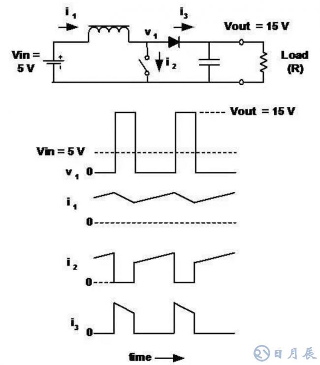 ■輸入電流連續(xù),輸出電流不連續(xù)(與降壓調整器相反)。