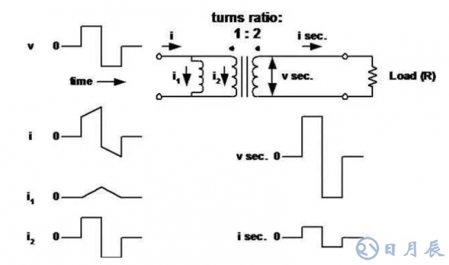 ■變壓器看作理想變壓器,它的初級(磁化)電感與初級并聯(lián)。