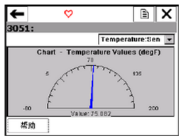 從下拉菜單中選擇的變量顯示為彩色長(zhǎng)指針,而其他變量顯示為彩色短指針。顏色顯示由設(shè)備描述決定,可能因設(shè)備不同有所變化。每個(gè)儀表盤圖表最多僅有三個(gè)變量。顯示的標(biāo)簽和軸均由設(shè)備生產(chǎn)商決定。