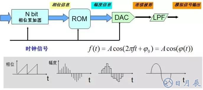 利用數(shù)字技術(shù)進行信號波形合成,其特點是輸出頻率步進指標很高,頻率跳變速度很快,但輸出頻率范圍較窄。