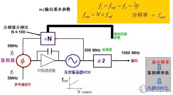從頻率關(guān)系上分析,PLL相當于一個倍頻器:PLL輸出信號頻率變化步進為其鑒相器工作頻率。