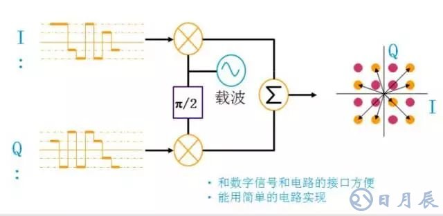 IQ調(diào)制器:I和Q路信號由同一本振信號合成,但本振有90度相移,I/Q路互不干擾,最后得到一和路信號。