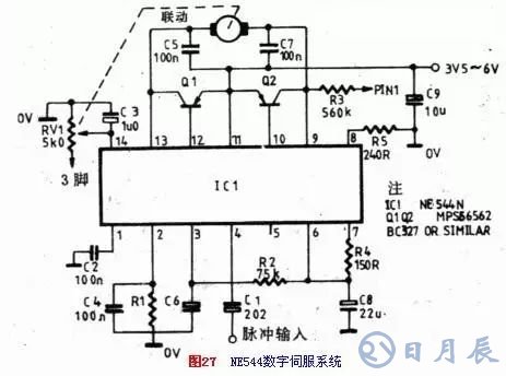 數字伺服電機控制單元,可以買到現成的集成電路。例如ZN409CE或NE544N型伺服電機放大器集成電路。圖26和圖27示出了這兩種集成電路的典型應用。