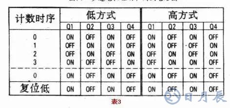 當方式控制輸入端為低電平時,在一個方向上(通常為順時針轉動)順序重復。反之,方式控制端為高電平時,則在另一個方向上(反時針轉動)順序重復。