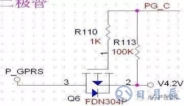 來看這個電路,控制信號PGC控制V4.2是否給P_GPRS供電。此電路中,源漏兩端沒有接反,R110與R113存在的意義在于R110控制柵極電流不至于過大,R113控制柵極的常態(tài),將R113上拉為高,截至PMOS,同時也可以看作是對控制信號的上拉。當(dāng)MCU內(nèi)部管腳并沒有上拉時,即輸出為開漏時,并不能驅(qū)動PMOS關(guān)閉,此時,就需要外部電壓給予的上拉,所以電阻R113起到了兩個作用。R110可以更小,到100歐姆也可。