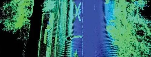 在激光雷達(dá)圖像中顏色編碼反映強(qiáng)度,車道標(biāo)志會“浮現(xiàn)”出來
