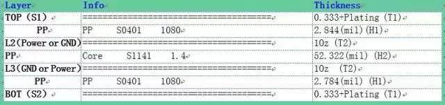 下圖為四層板的參考疊層,其中中間兩層為參考層,參考層通常為GND或Power,并且差分線所對(duì)應(yīng)的參考層必須完整,不能被分割,否則會(huì)導(dǎo)致差分線阻抗不連續(xù)。若是以圖 2疊層設(shè)計(jì)四層板,通常設(shè)計(jì)時(shí)差分線采用4.5mil的線寬及5.5mil的線間距既可以滿足差分阻抗90Ω。