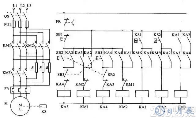 19、具有反接制動電阻的可逆運行反接制動的控制線路