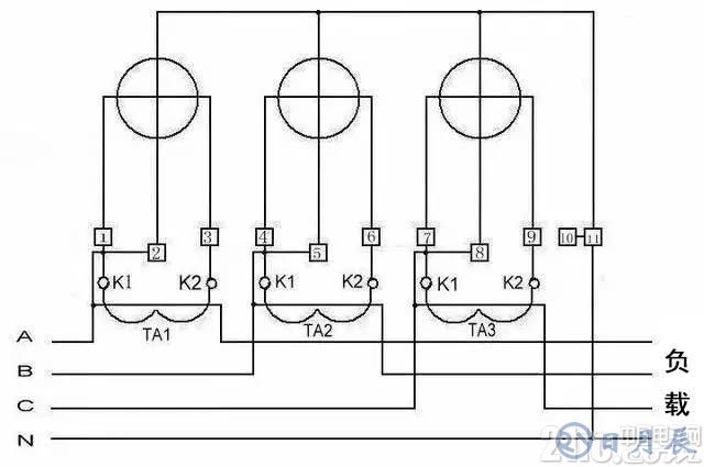 3、三相四線電度表互感器接線