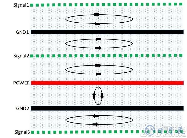 PCB疊層EMC規(guī)劃與設(shè)計思路的核心就是合理規(guī)劃信號回流路徑,盡可能減小信號從單板鏡像層的回流面積,使得磁通對消或最小化。