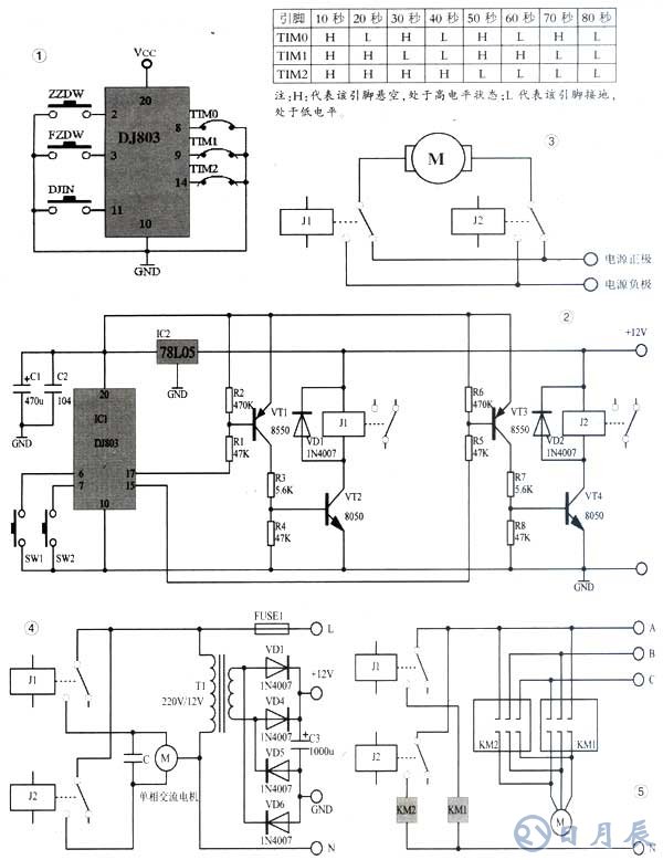 1.單相交流電機(jī)筆者購買的控制器是用于控制直流電機(jī)的,根據(jù)其工作原理.筆者這里給出交流電機(jī)正反轉(zhuǎn)控制的電路圖,供讀者參考。