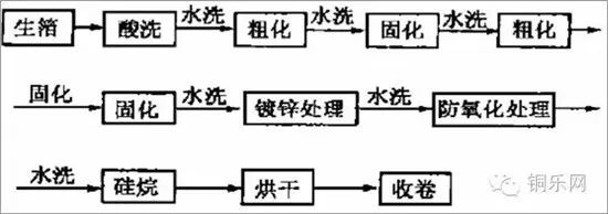 電解銅箔生產(chǎn)后續(xù)工序處理圖: