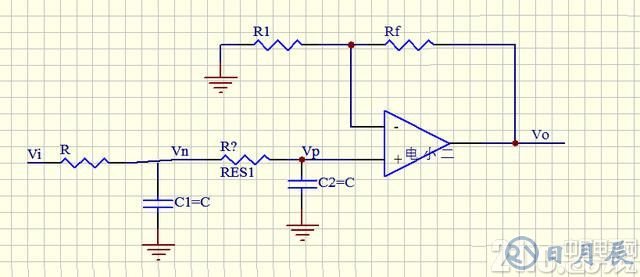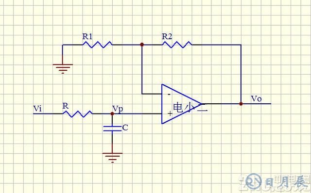 下圖就是一階有源低通濾波電路;