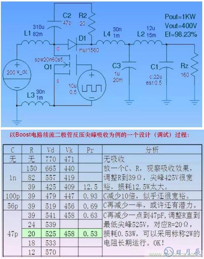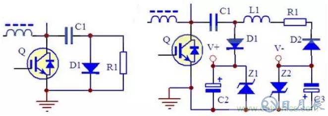 比如對二極管反壓的吸收,即使其他情況完全相同,使用不同的二極管型號需要的RC吸收參數(shù)就可能有很大差距。很難推導出一個通用的計算公式出來。