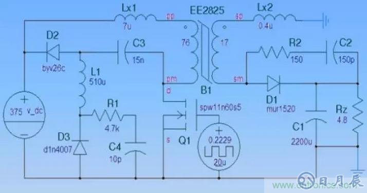 同時將Q1、D1的電壓尖峰、振鈴減少到最低程度。