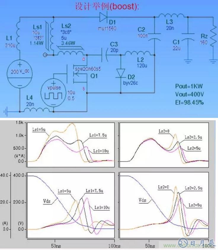 引起電壓尖峰的電感可能是:變壓器漏感、線路分布電感、器件等效模型中的感性成分等。