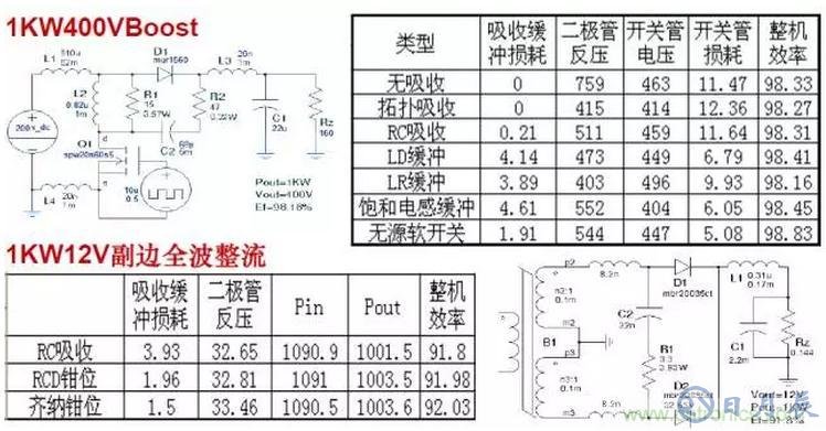 無源無損軟開關電路效率明顯高于其他緩沖吸收方式,與有源軟開關電路效率相差無幾。因此只要能夠實現(xiàn)無源軟開關的電路,可不必采用有源軟開關。