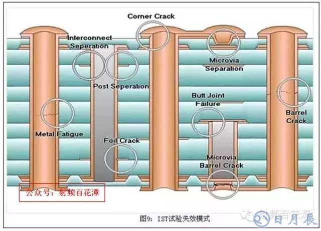在PCB的各種溫度循環(huán)試驗中,其主要失效機(jī)理是因為板材的Z軸CTE遠(yuǎn)遠(yuǎn)高于孔銅的CTE,在溫度劇烈變化的過程中,各種應(yīng)力集中處容易被Z軸膨脹拉斷,常見的失效模式見圖9所示:
