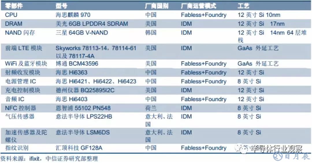 智能手機(jī)內(nèi)部芯片對(duì)應(yīng)工藝-華為 P20