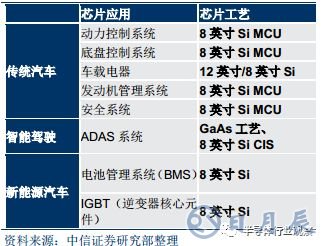 智能駕駛所采用半導(dǎo)體器件包括高性能計(jì)算芯片及 ADAS 系統(tǒng)。 高性能計(jì)算芯片目前采用 12 英寸先進(jìn)制程,而 ADAS 系統(tǒng)中的毫米波雷達(dá)則涉及砷化鎵材料,目前國(guó)內(nèi)尚無(wú)法量產(chǎn)。