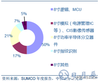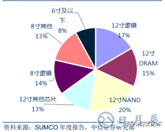 由此估算,包括 NAND、 DRAM在內(nèi)用于存儲(chǔ)市場(chǎng)的 12 寸晶圓需求約占總需求 35%, 8 寸晶圓需求約占總需求 27%,用于邏輯芯片的 12 寸晶圓需求約占 17%。需求上看,目前存儲(chǔ)器貢獻(xiàn)晶圓需求最多, 8 寸中低端應(yīng)用其次。