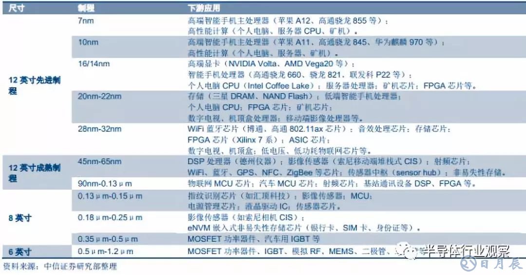 下游主要應(yīng)用分析:從制程材料看芯片國(guó)產(chǎn)化程度