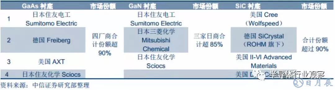 化合物半導(dǎo)體晶圓供給廠商格局:日美德主導(dǎo),寡占格局。