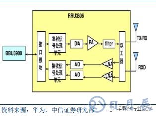 通信基站對(duì)國(guó)外芯片依賴程度極高,且以美國(guó)芯片企業(yè)為主。 目前基站系統(tǒng)主要由基帶處理單元(BBU)及射頻拉遠(yuǎn)單元(RRU)兩部分組成, 通常一臺(tái) BBU 對(duì)應(yīng)多臺(tái) RRU 設(shè)備。 相比之下, RRU 芯片的國(guó)產(chǎn)化程度更低,對(duì)于國(guó)外依賴程度高。