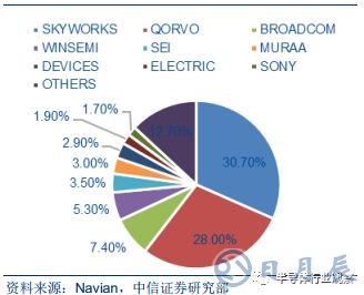 化合物半導(dǎo)體產(chǎn)業(yè)鏈呈現(xiàn)寡頭競(jìng)爭(zhēng)格局。 IDM 類廠商包括 Skyworks、 Broadcom(Avago)、 Qorvo、 Anadigics 等。 2016 年全球化合物半導(dǎo)體 IDM 呈現(xiàn)三寡頭格局, 2016年 IDM 廠商 Skyworks、 Qorvo、 Broadcom 在砷化鎵領(lǐng)域分別占據(jù) 30.7%、 28%、 7.4%市場(chǎng)份額。產(chǎn)業(yè)鏈呈現(xiàn)多模式整合態(tài)勢(shì),設(shè)計(jì)公司去晶圓化及 IDM 產(chǎn)能外包成為必然趨勢(shì)。