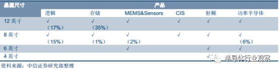 晶圓尺寸對(duì)應(yīng)產(chǎn)品類型