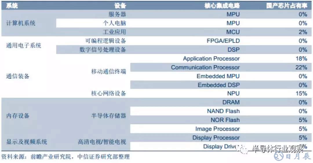當(dāng)前中國(guó)核心集成電路國(guó)產(chǎn)芯片占有率