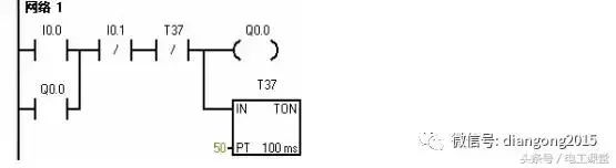 2.延時停止控制 定時時間到,延時停止。I0.0為啟動按鈕、I0.1為停止按鈕。