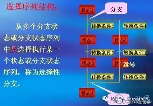 在生產(chǎn)實際中,對具有多流程的工作,要進(jìn)行流程選擇或者分支選擇。即一個控制流可能轉(zhuǎn)入多個可能的控制流中的某一個,但不允許多路分支同時執(zhí)行。到底進(jìn)入哪一個分支,取決于控制流前面的轉(zhuǎn)移條件哪一個為真。