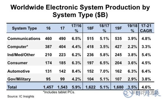 IC Insights市場(chǎng)分析師指出,今年汽車電子系統(tǒng)的銷售額預(yù)計(jì)將成長7%,達(dá)到1,520億美元,2019年將再成長6.3%,達(dá)到1,620億美元。該公司預(yù)計(jì),從2017年到2021年,汽車電子系統(tǒng)銷售將以6.4%的復(fù)合年成長率(CAGR)成長,成長幅度超過其他的主要電子系統(tǒng)類別。