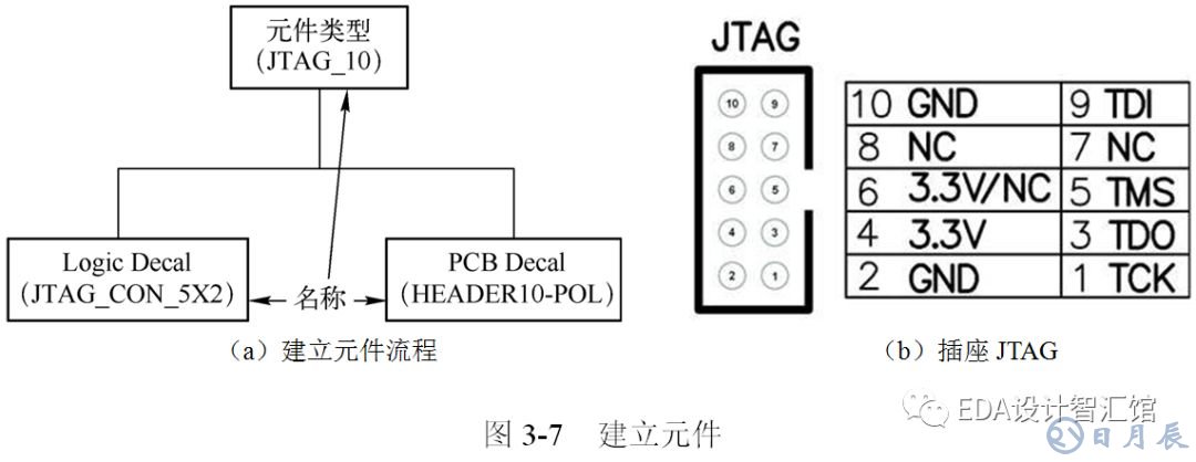 這里假設PCB Decal已經(jīng)建好了(PCB Decal名稱為HEADER10-POL)。以常用調(diào)試插座JTAG為例,如圖3-7所示。