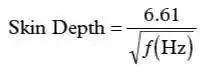 在高頻段,必須考慮一種稱為“趨膚效應(yīng)”的現(xiàn)象。趨膚效應(yīng)會引起電流流向?qū)Ь€的外表面——結(jié)果會使得導(dǎo)線的橫截面變窄,因此使直流(DC)電阻增大。雖然趨膚效應(yīng)超出了本文討論的范圍,這里還是給出銅線中趨膚深度(Skin Depth)的一個很好的近似公式(以cm為單位):