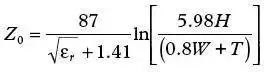 公式(6)可以用于計算一塊FR4板的特征阻抗。