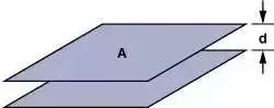 當(dāng)尋找有問題的寄生源時,可能用得著幾個計算上述那些寄生電容尺寸的基本公式。公式(1)是計算平行極板電容器(見圖5)的公式。